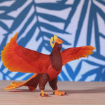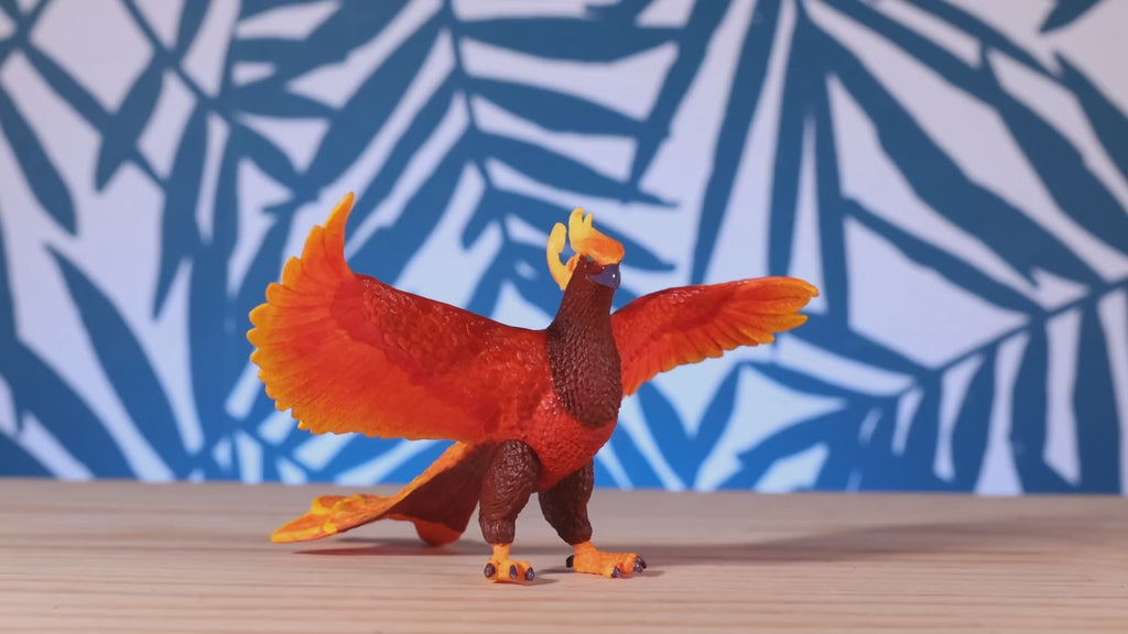 Oiseau extraordinaire, le Phénix arbore un plumage aux couleurs chatoyantes, mélange de rouge, de bleu et d'or, lui donnant l'allure d'un oiseau de feu. On dit qu'il ne peut n'en exister qu'un seul à la fois et qu'il vitruet plus de 500 ans. Ne pouvant se reproduire, lorsque le Phénix sent sa fin venir il se confectionne un nid à base de branches aromatiques et d'encens auquel il met le feu. Ainsi il se consume dans les flammes, avant de renaître de ses cendres.